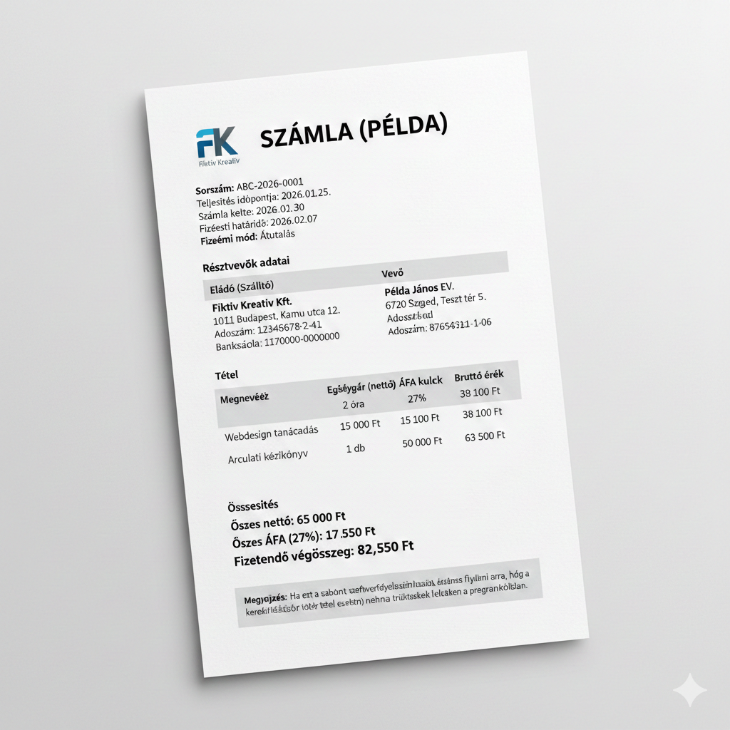 Fizetési határidő: min 15 nap, átutalással